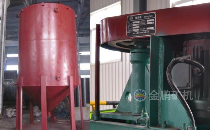 攪拌槽由豎軸部、架子、桶體部、溢流口、電動機、電動機座等組成。葉輪的旋轉是由電動機通過皮帶輪、三角帶而得到葉輪的旋轉使礦粒與藥劑充分接觸。