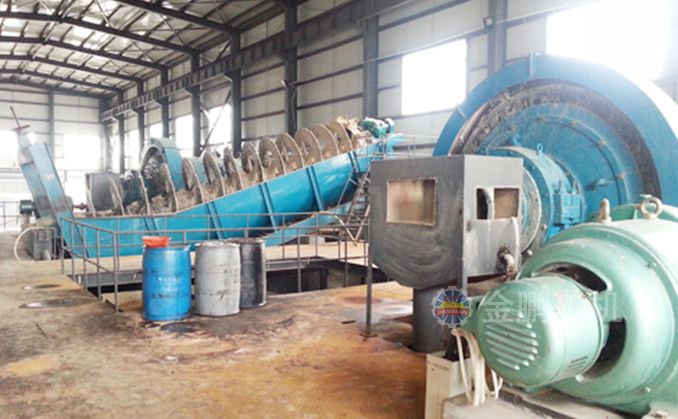 一般常用將螢石和重晶石混浮,然后進行分離,混浮用油酸做捕收劑,水玻璃做抑制劑。混合精礦的分離,可以采用下 列兩種方法: